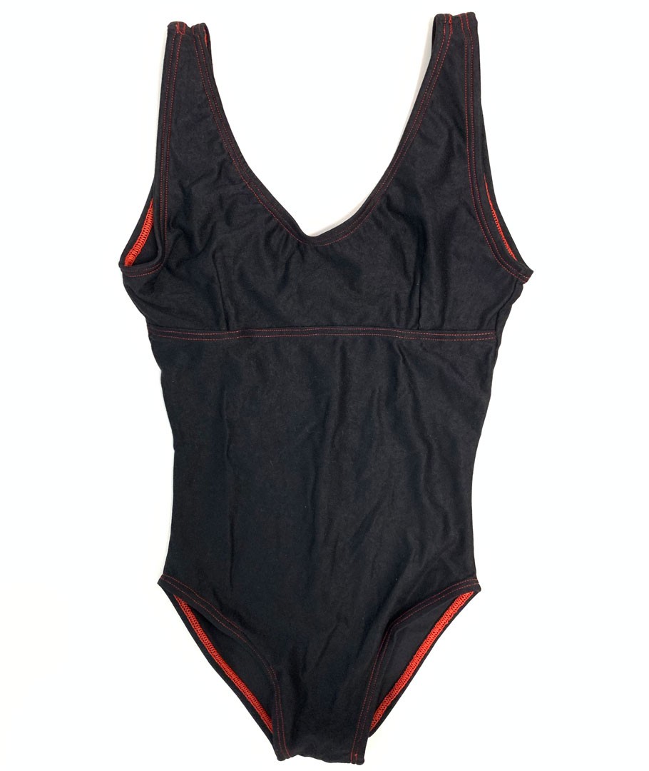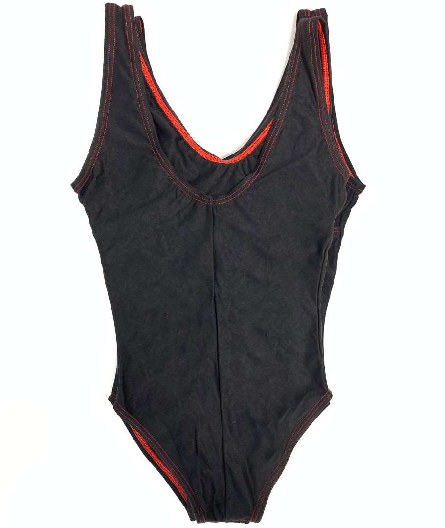 Schwarzer Tanzanzug mit kontrastierenden roten Nähten