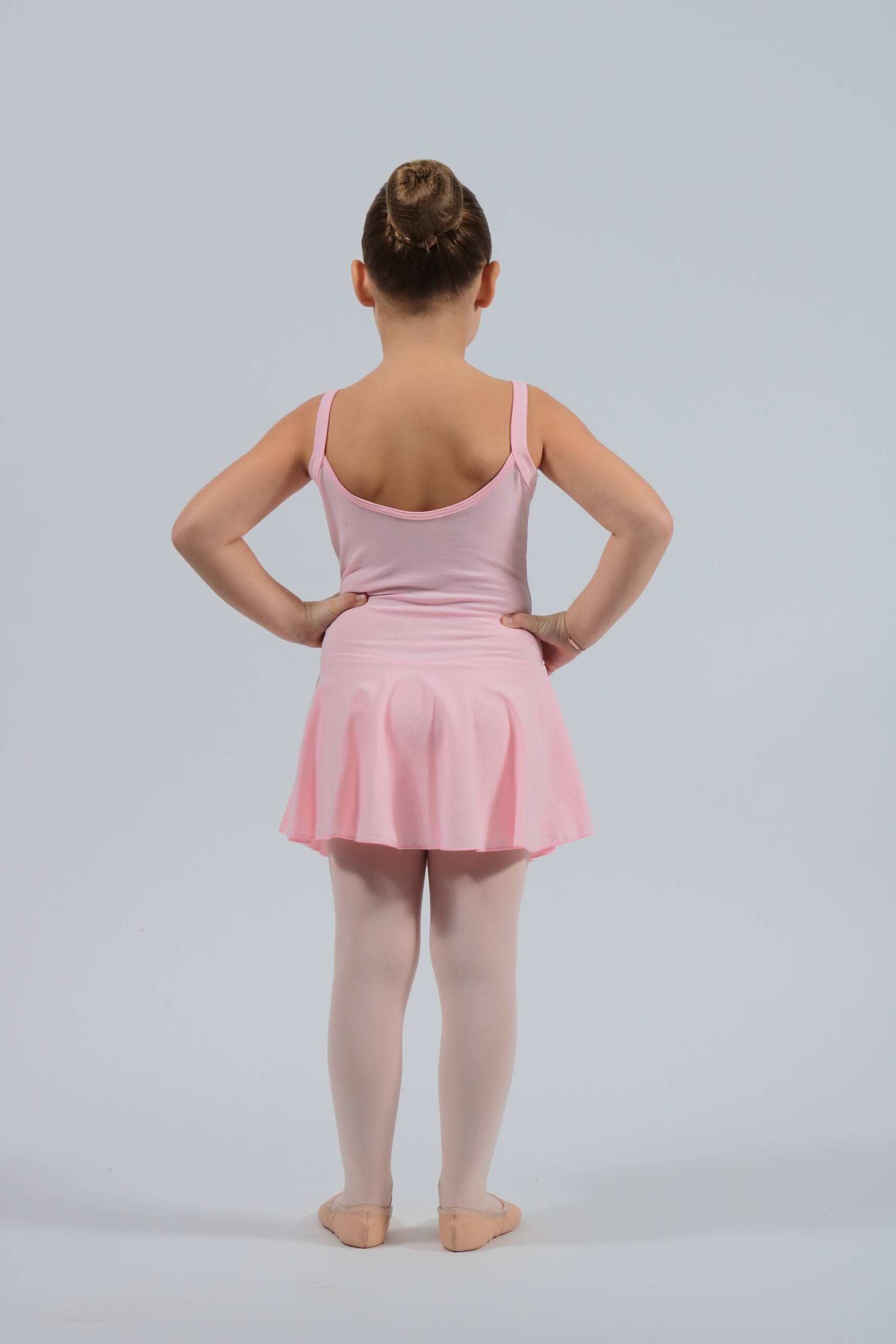 Tanztrikot mit Trägern, mit angesetztem Rock, ideal für Mädchen und Unterschichten.