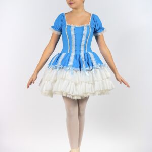 Klassisches Tanzkostüm aus Chiffon. Tunika aus weichem Chiffon, an den Seiten offen, mit goldfarbenem Lamè-Gürtel, der an der Tunika angebracht ist.