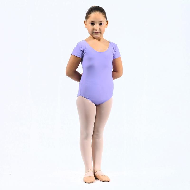 Round neck bodysuit with half sleeves. Under scapular neckline on the back finished with 3 crosses made with the same fabric as the body.