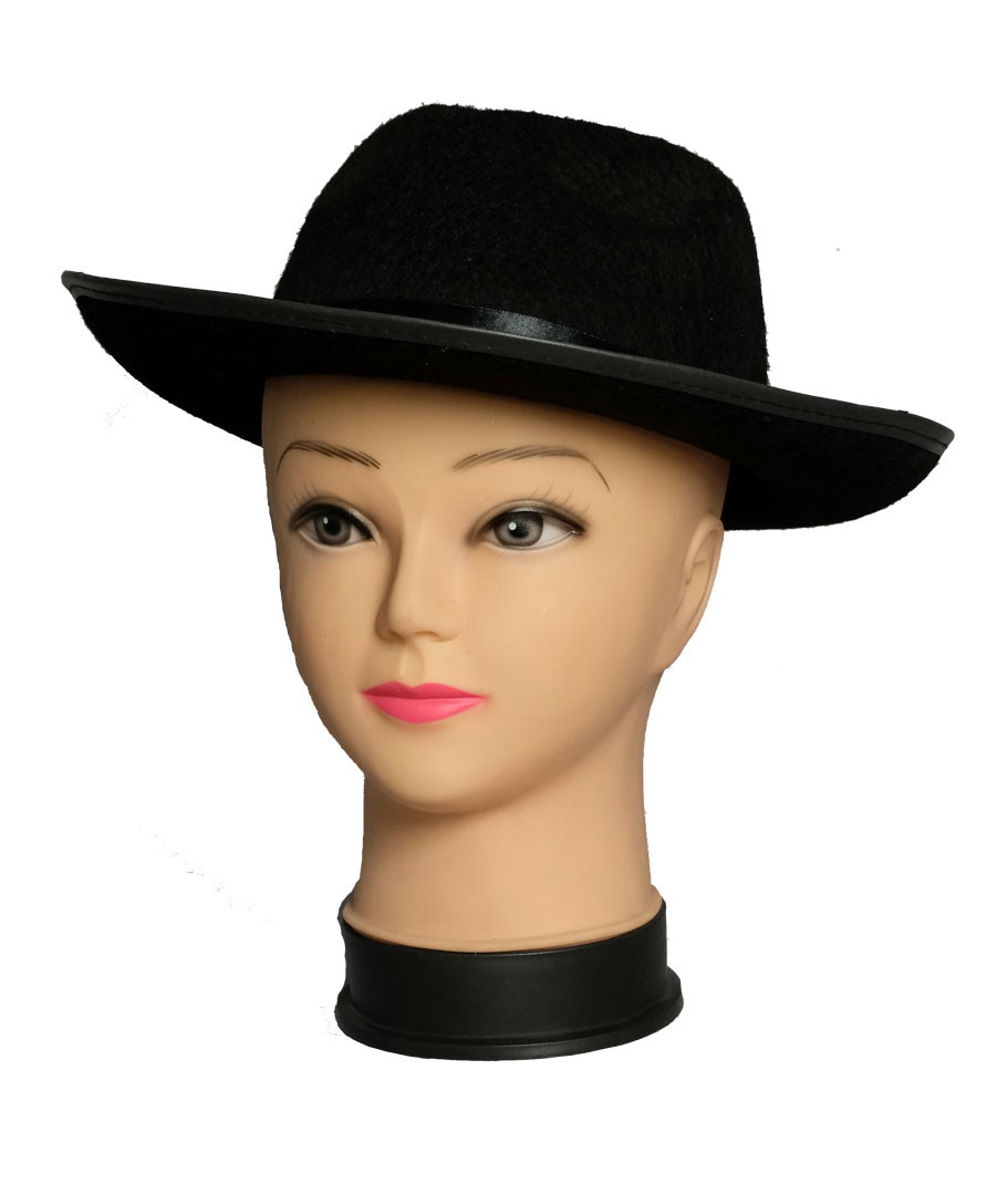 Classic hat, black with shiny band around, finished with eco-leather piping.