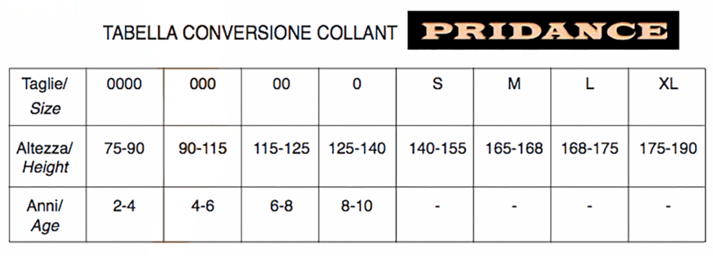 | Tights sizes | 00, 000, L, m, St, XL |