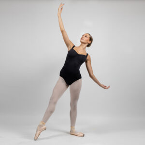 Body danza con tagli, arriccio seno e bretelle in rete Eva