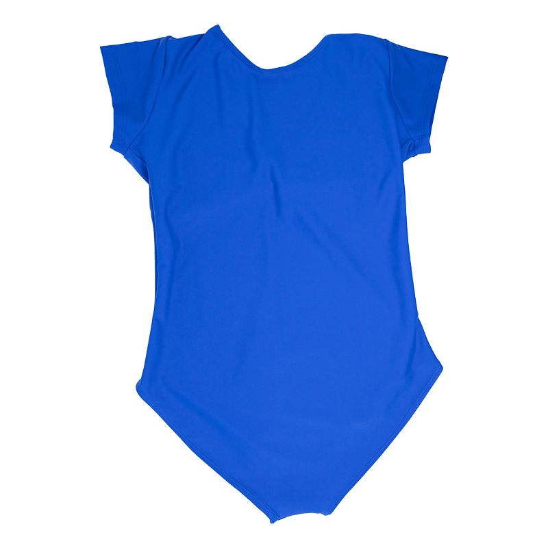 Body in lycra blu (colore come foto) realizzato con mezza manica last ed arriccio fisso al seno