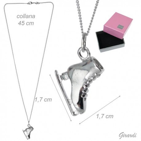 Collana in metallo con pendente pattino da ghiaccio. Ideale da regalare a Natale.