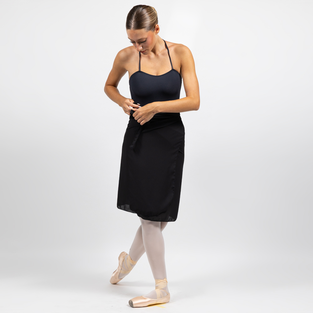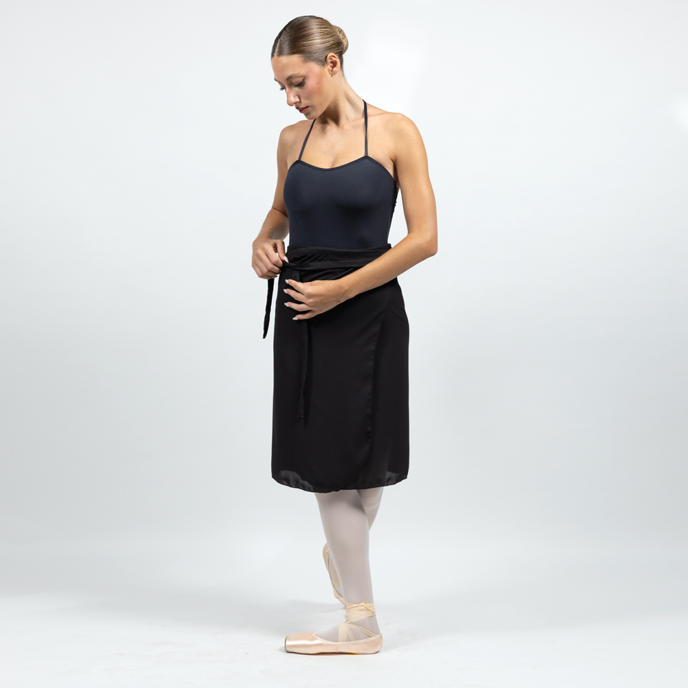 Gonna portafoglio lunghezza ginocchio con pratico allaccio.