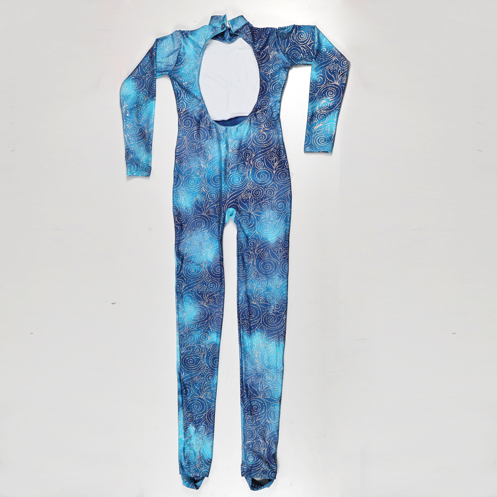 Tuta Accademica manica lunga realizzata in lycra con fantasia sfumata in tinte di blu con contrasti luminosi .
